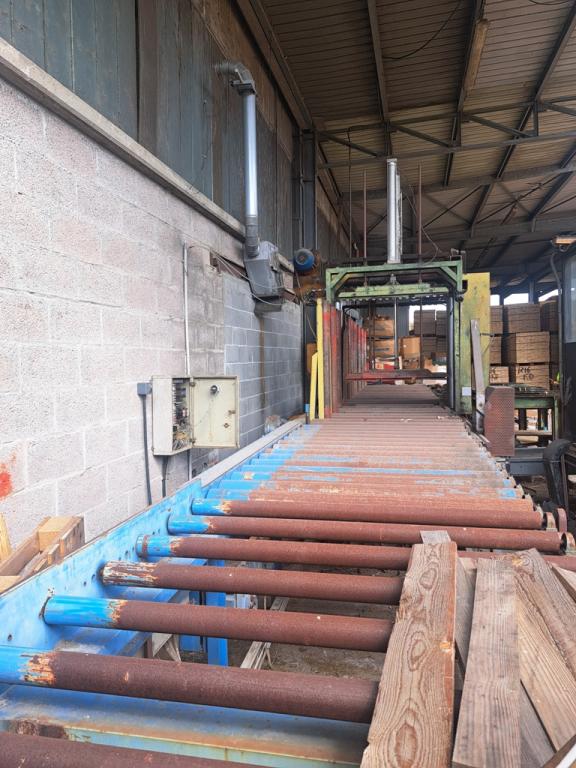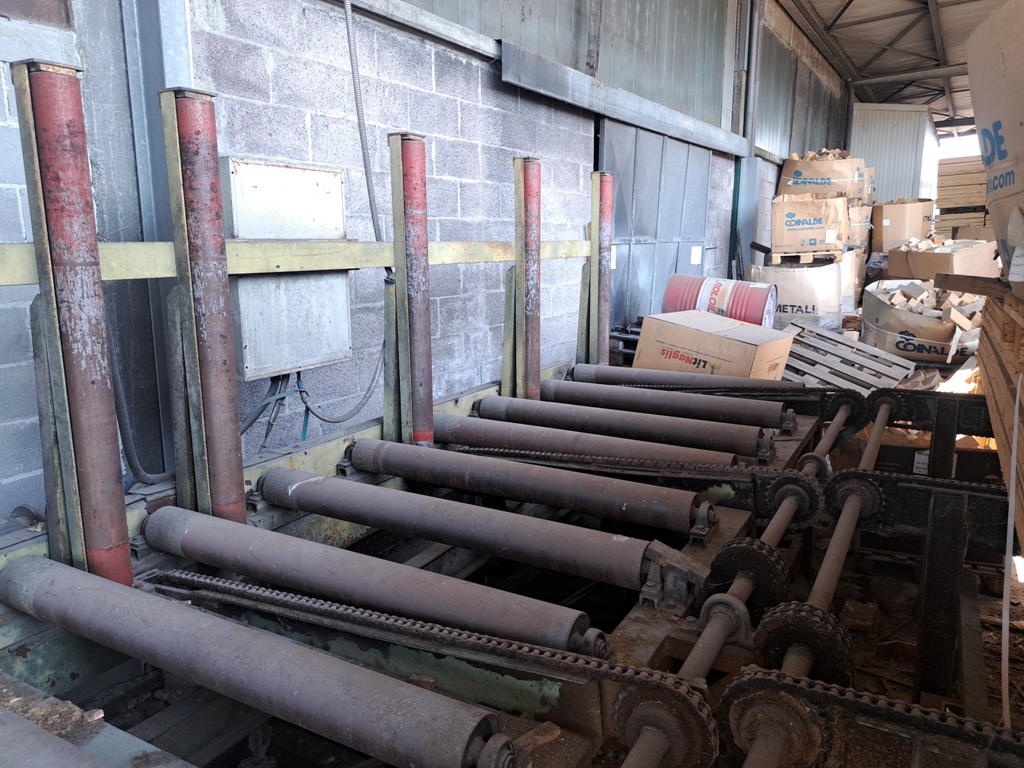 Left-hand outfeed roller conveyor, length 4500 mm, of which 2000 mm with motorized rollers and 2500 mm with idle rollers