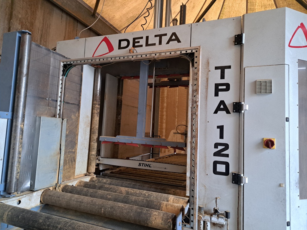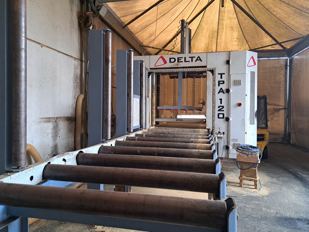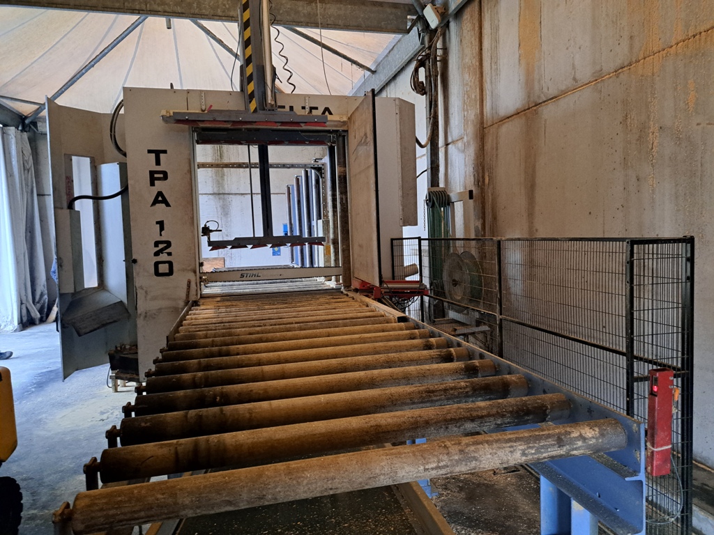 Unità di taglio, per mezzo di sega a catena (Stihl), con passaggio massimo del pacco pari a 1200mm di larghezza e 1200mm di altezza.
